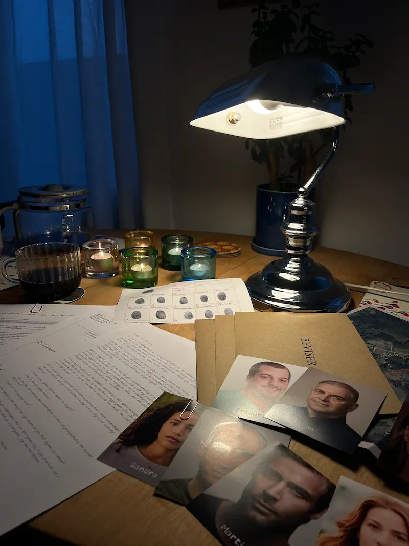 Bestil en uopklaret cold case med gerningsstedsundersøgelser, politiafhøringer, mystiske beviser, kort og meget mere. Det perfekte spil til middag med vennerne, date night eller en aften med familien! 🍷